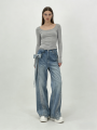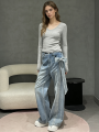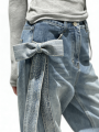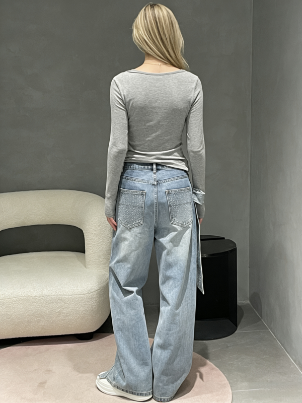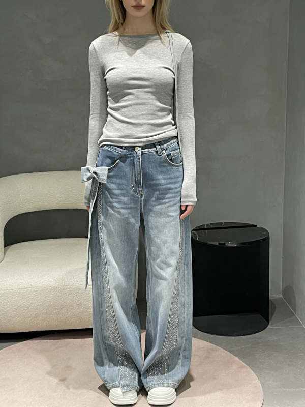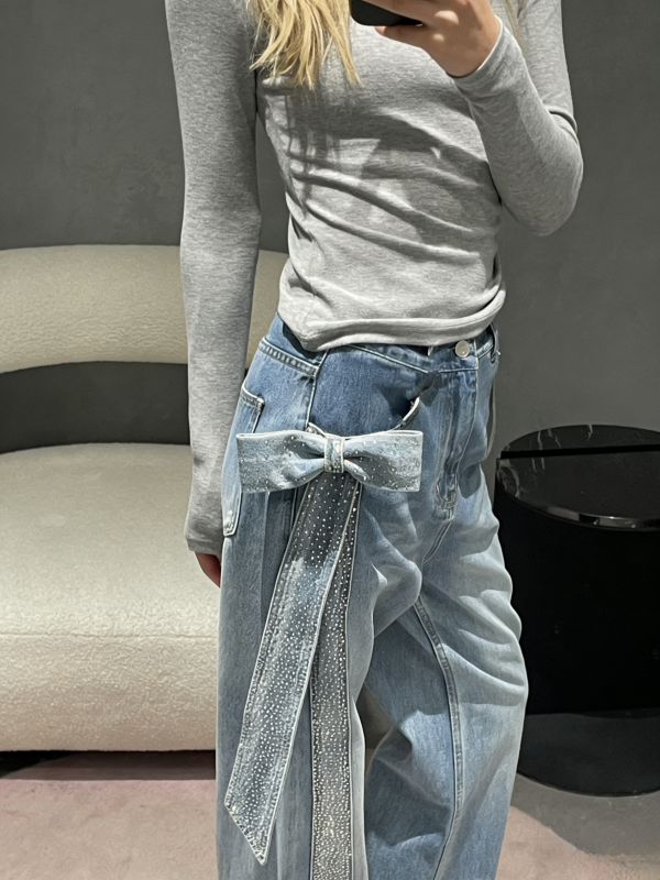 Youxiao Zhong Ann Women's Bowknot Rhinestone Patchwork High-Waisted Straight Jeans, New Spring Style Casual Pants